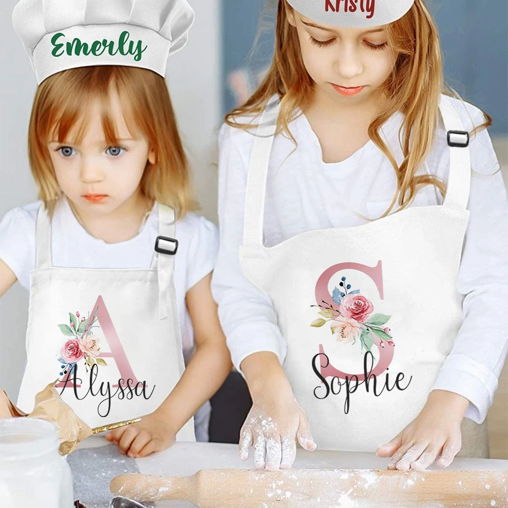 Personalized Kids Apron Cooking Kitchen Apron Pink Flower Initial and Name Apron for Children Custom Girls Cooking Apron Gift  Read more