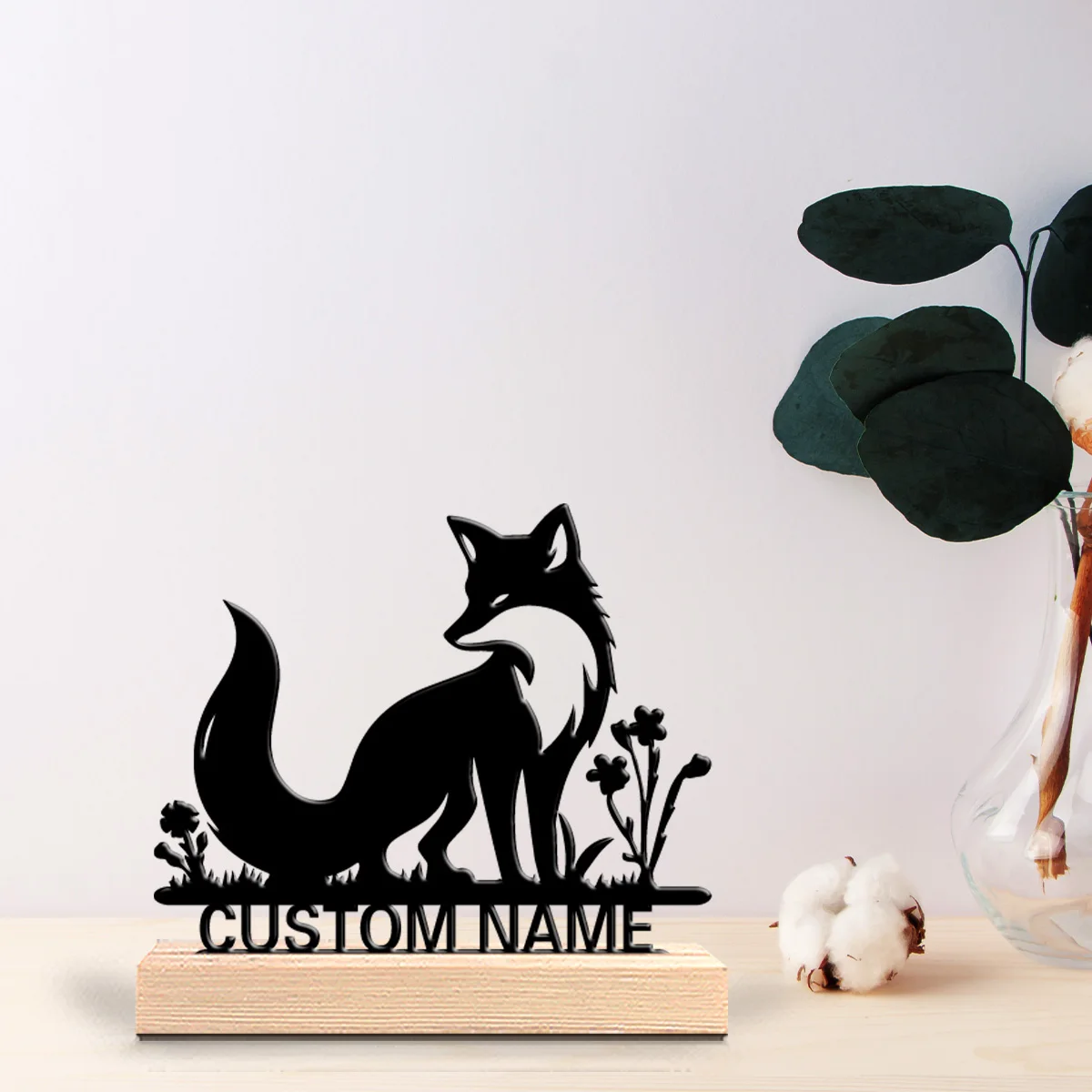 1pc Beauty Personalized Custom Fox Metal Statues Metal Art With Wooden Base Suitable For Office, Bedroom, Living Room, Desktop D
