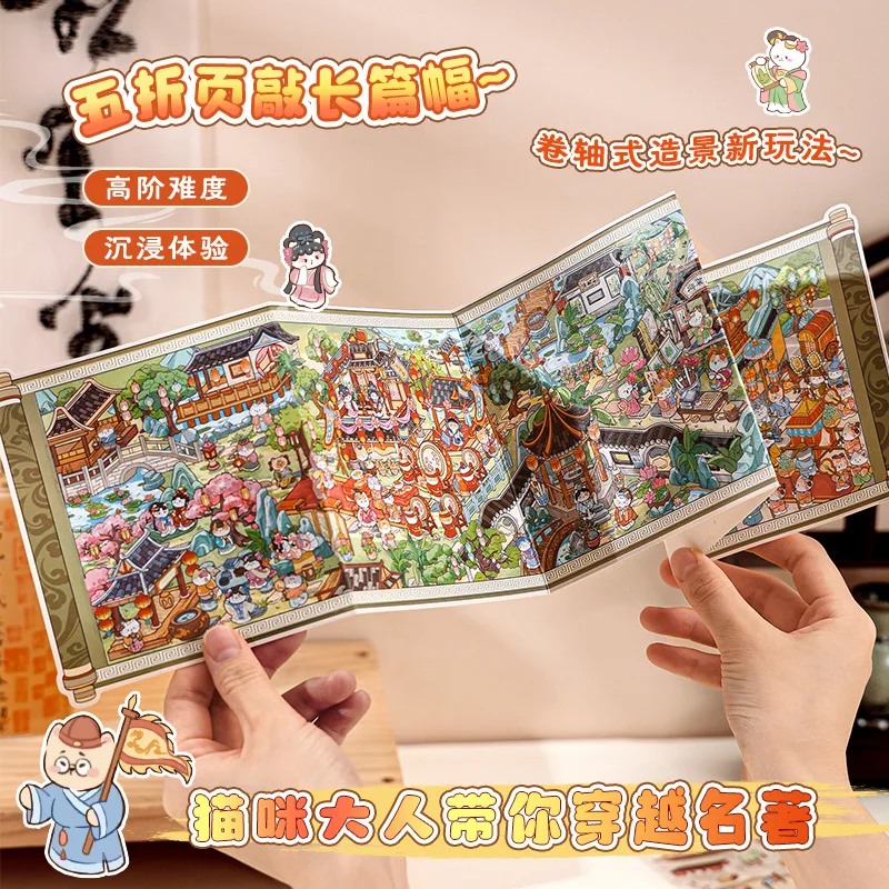 Card Lover 15 Pcs [Time Travel Masterpieces Series] Landscape Stickers Material Extra Long Qingming Riverside Folding Scrapbook