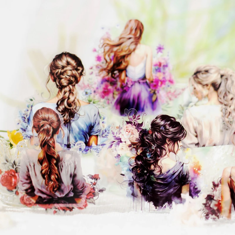 Yoofun 10pcs Girl's Back Stickers Scrapbooking Back Shadow Collage Junk Journal Sticker Card Album Mobile Laptop diy Label