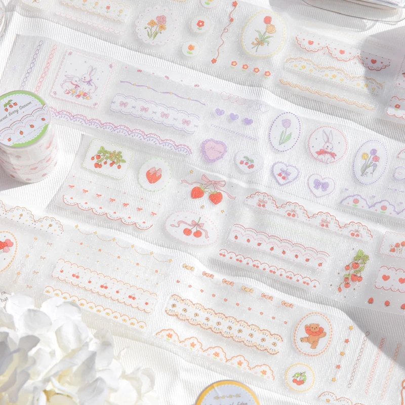 Mr Paper 2rolls Strawberry Sweetheart Series PET Glitter Sand Die-cut Tape Handbook Collage DIY Phone Case Laptop Envelope Card  Read more