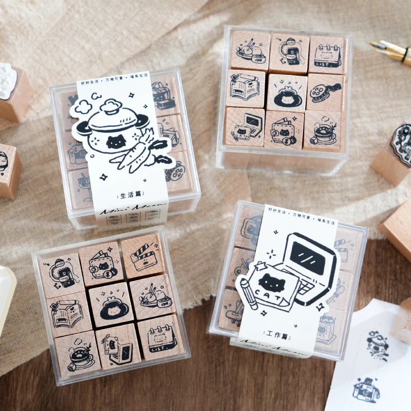 Journal GO 9pcs/set Cute Little Cat Decoration Stamp Retro Wooden Rubber Stamps for Scrapbooking Collage Junk Journal Card diy  Read more