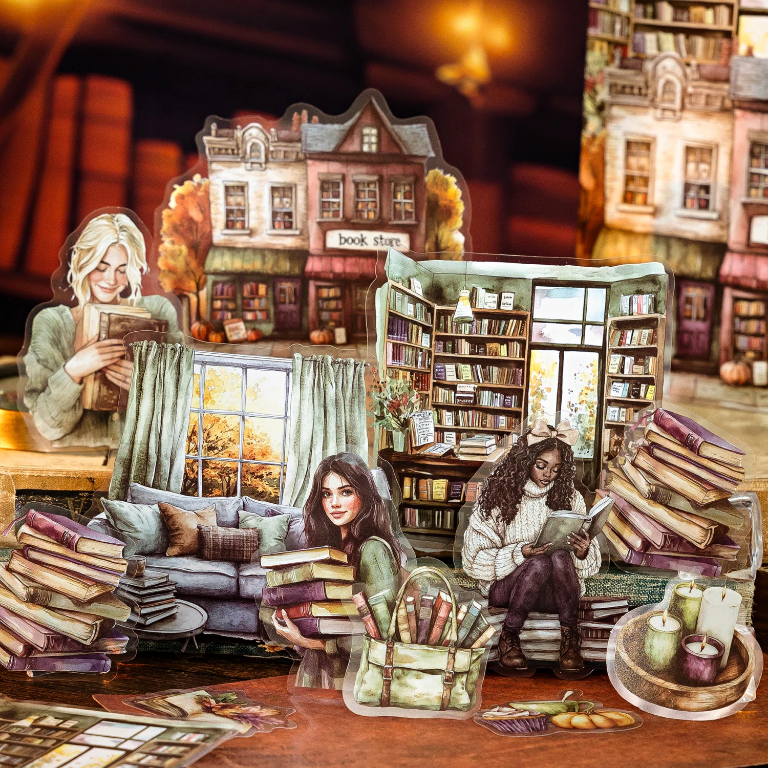 300pcs/pack Landscape Cartoon Sticker Film Paper Junk Journal Art Collage DIY Photo Album DIY Craft Scrapbooking School Supplies