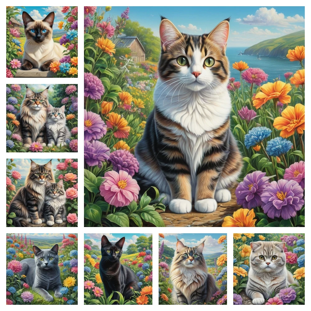 Cat In The Flowers Diamond Painting New 2024 DIY Full Square Diamond Inlaid Embroidery Cartoon Cute Animal Art Home Decor Gifts