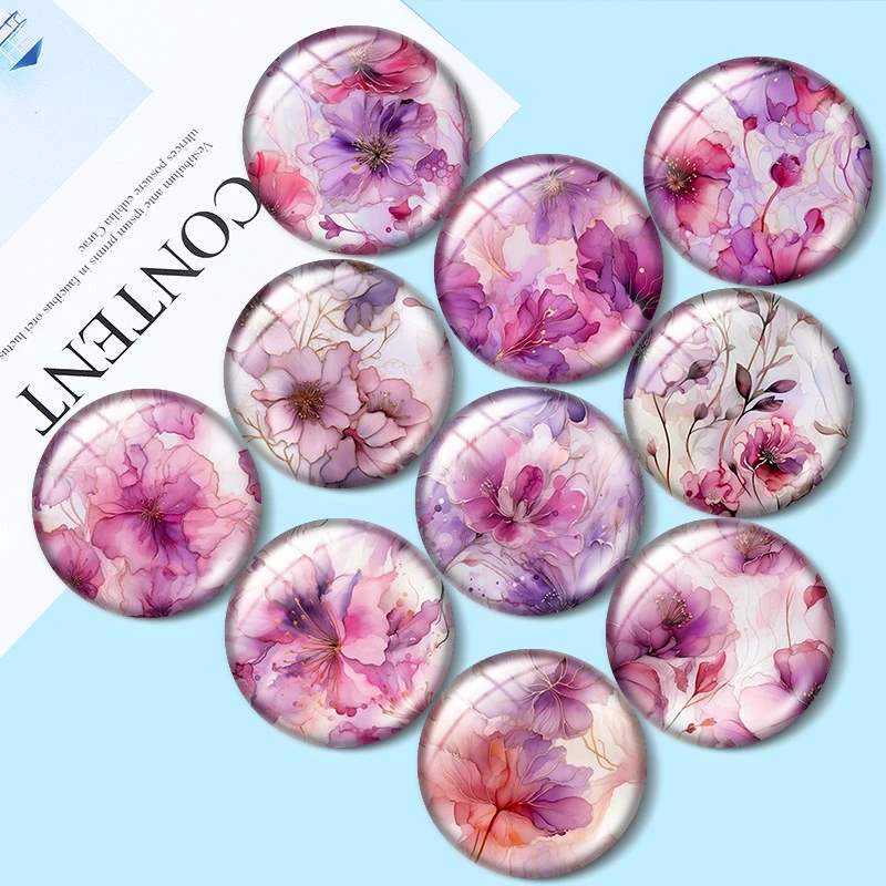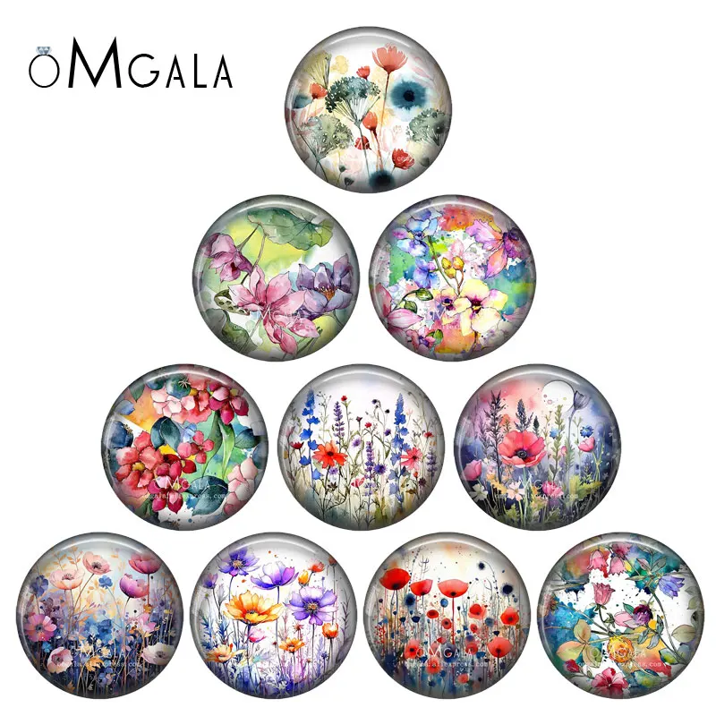 Watercolor illustration of flowers mix 10pcs12mm/16mm/18mm/25mm Round Photo Glass Cabochon Demo Flat Back Making findings