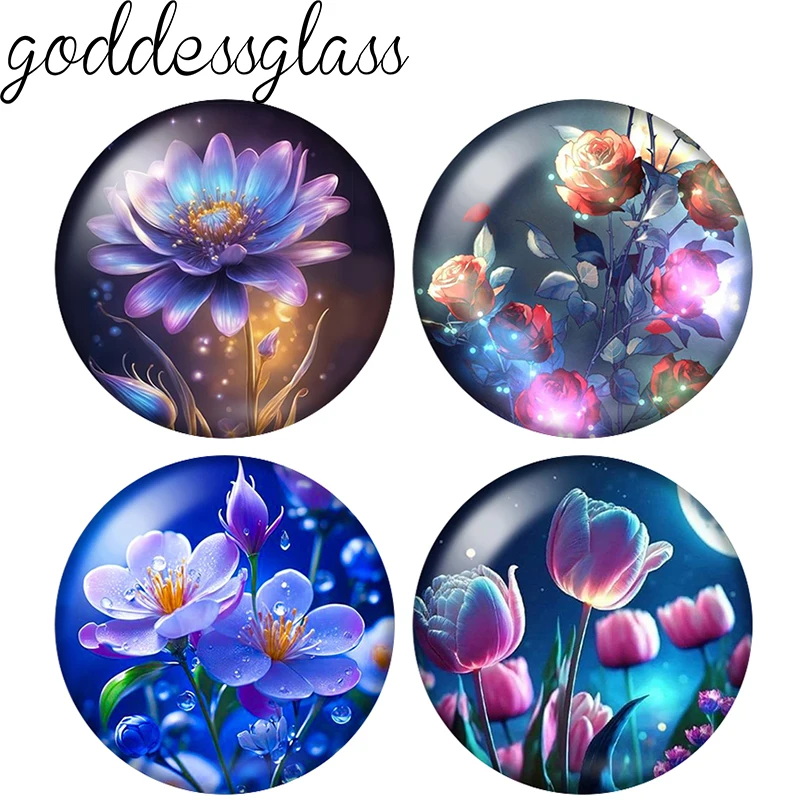 Beauty Night glowing Flowers Rose daisy tulip 12mm/18mm/20mm/25mm Round photo glass cabochon demo flat back Making findings