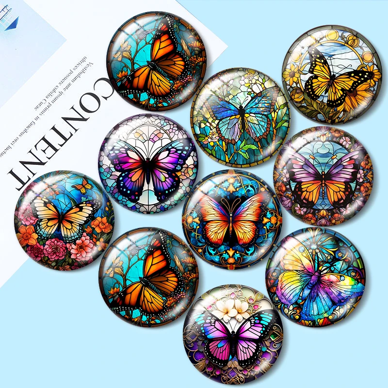 Butterfly With Flowers Art Patterns 10pcs 12mm/18mm/20mm/25mm Round Photo glass cabochon demo flat back Making findings
