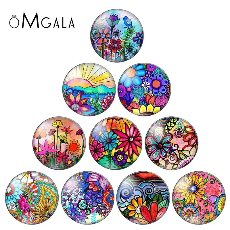 Art Colorful Oil Painting Flowers Pattern 10pcs 12mm/18mm/20mm/25mm Round photo glass cabochon demo flat back Making findings