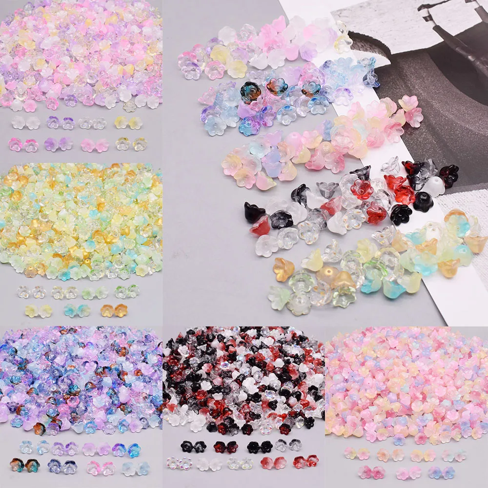 30/60/100pcs Colorful Trumpet Flower Lampwork Beads Bell Orchid Flower Czech Crystal Glass Beads For DIY Bracelets Necklace