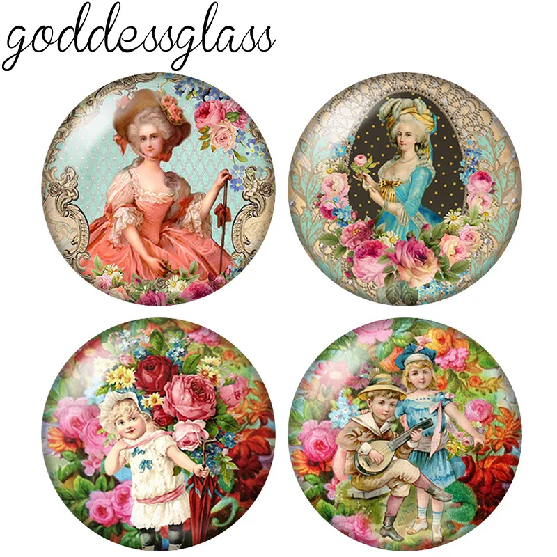 New Flowers Europea Lady Cute angel Children 10pcs 12mm/18mm/20mm/25mm Round photo glass cabochon demo flat back Making findings