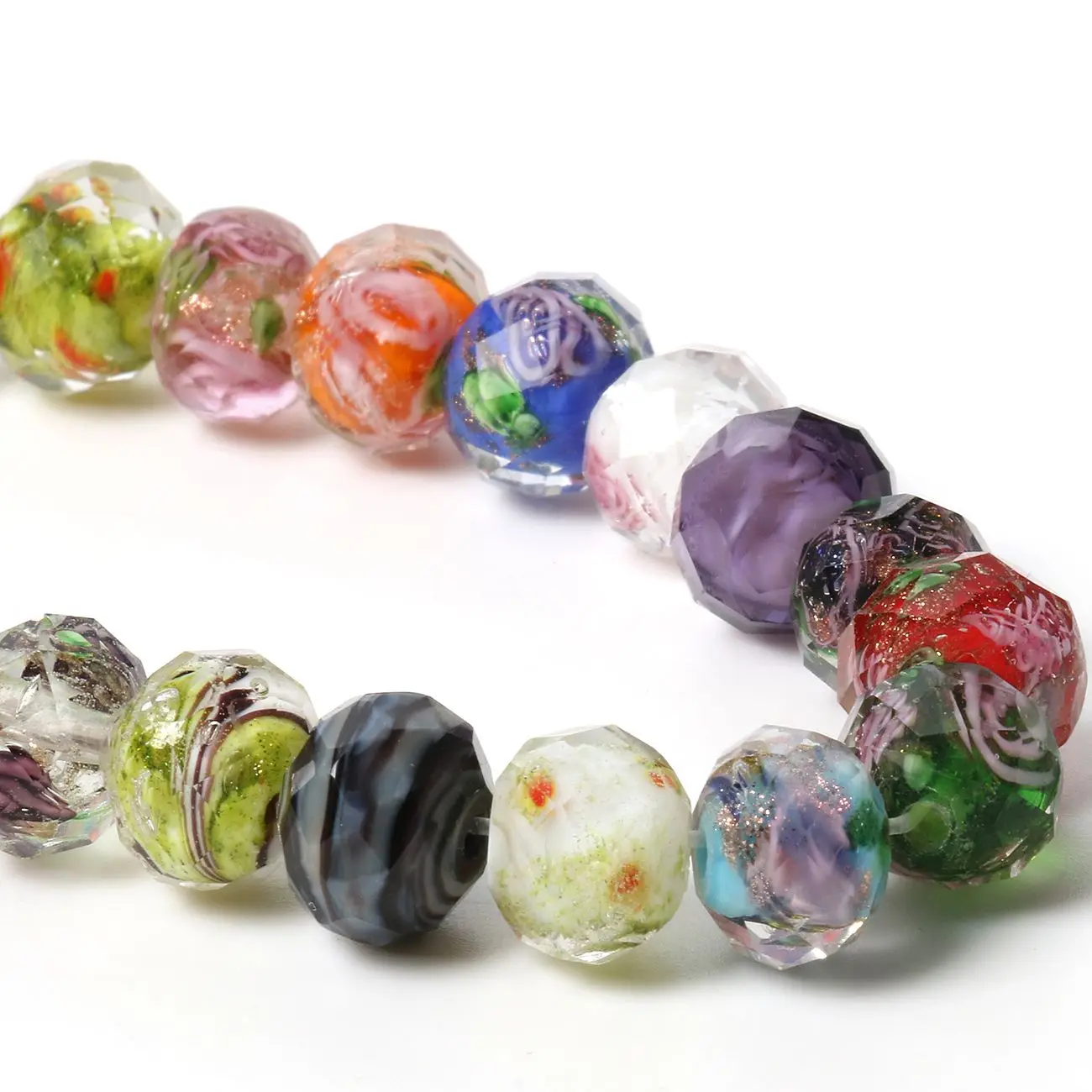 Murano Transparent Flower Lampwork Crystal Glass Beads Colorful Faceted Rondelle Spacer Beads For Jewelry Bracelet Diy Making