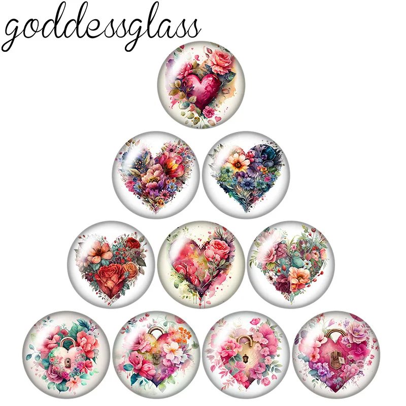 Flowers Heart Lock Love Hearts Beauty 10pcs 12mm/18mm/20mm/25mm Round photo glass cabochon demo flat back Making findings