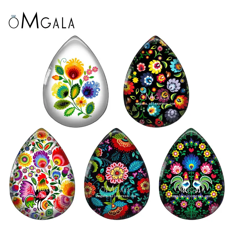 Fashion Floral Poland Folk Art Flowers Patterns 13x18/18x25mm Photo Glass Cabochon Flat Back For DIY Jewelry Making Findings
