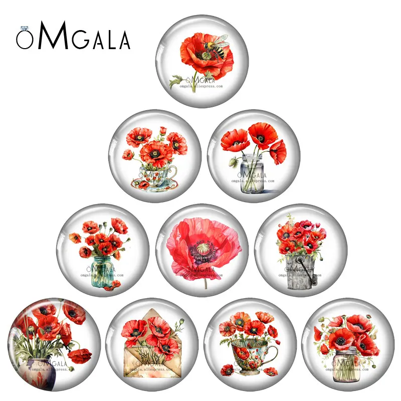 New Watercolor Red Poppy Flower Art Painting 12mm/18mm/20mm/25mm Round photo glass cabochon demo flat back Making findings