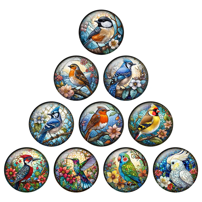 Watercolor Flowers Birds Art Paintings 24pcs Mix 12mm/20mm/25mm Round Photo Glass Cabochon Demo Flat Back Making Findings H151