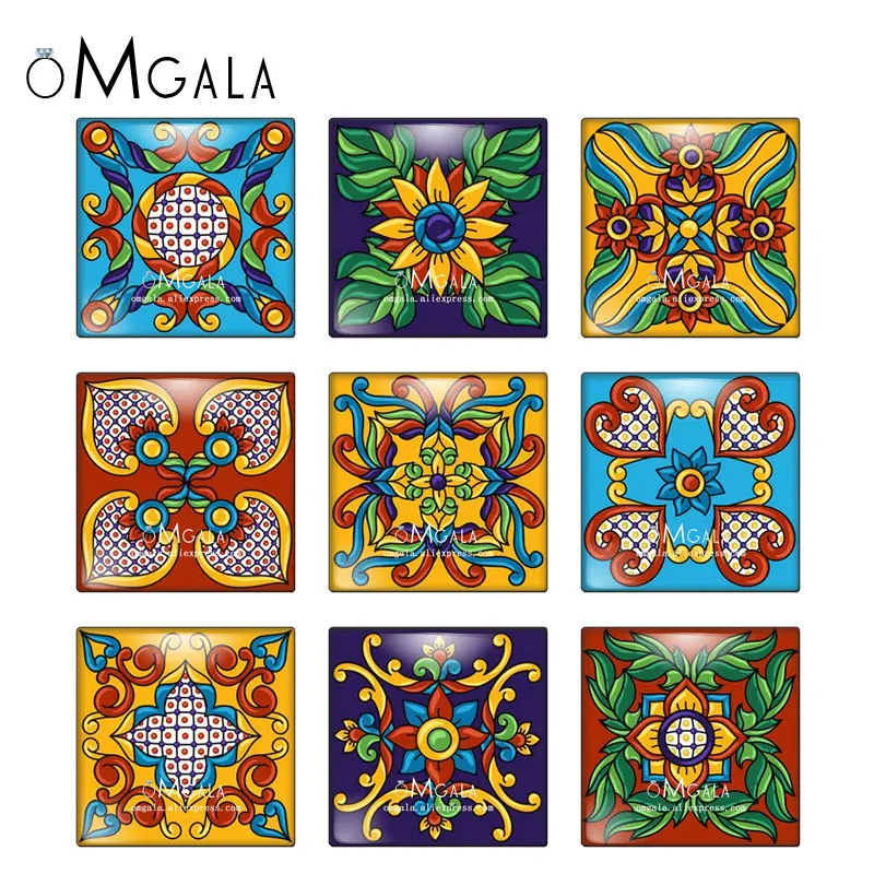 Colorful geometric flower patterns 10pcs mixed 12mm/20mm/25mm/30mm photo glass cabochon demo flat back Making findings