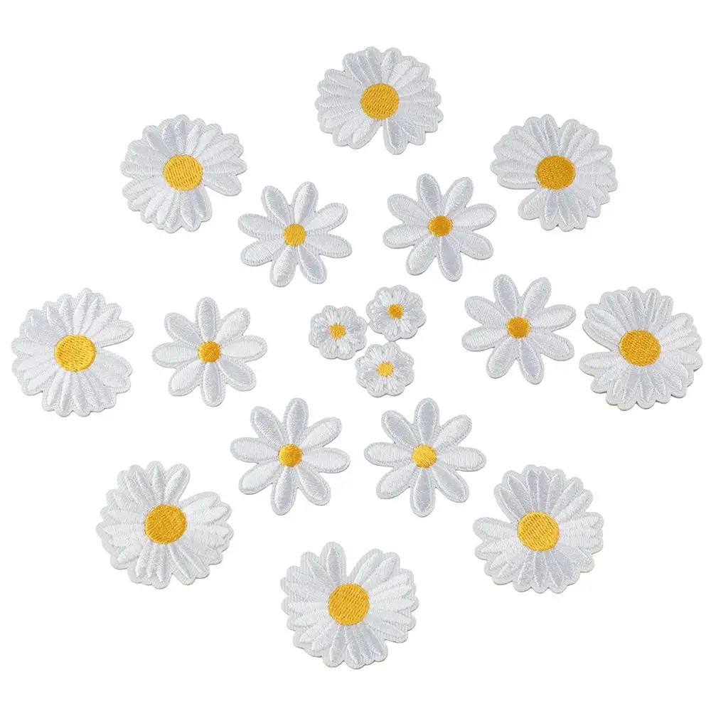 30PCS Daisy Iron On Patches White Daisy Embroidered Patch, Cute Flower Delicate Embroidered Appliques for Clothes Backpacks Jeans