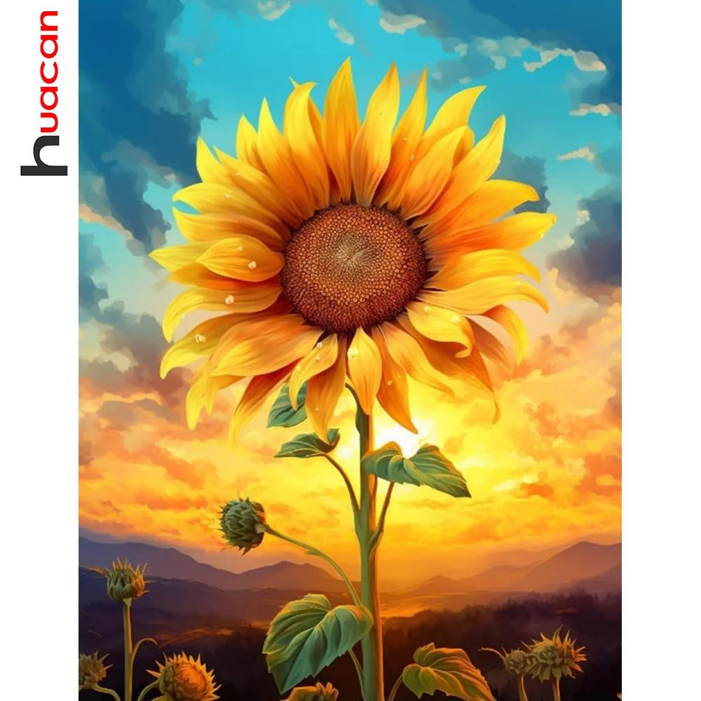 Huacan New Arrivals Diamond Embroidery Flower DIY Full Drill Mosaic Sunflower Sunset Complete Kit Handmade Gift Home Decor