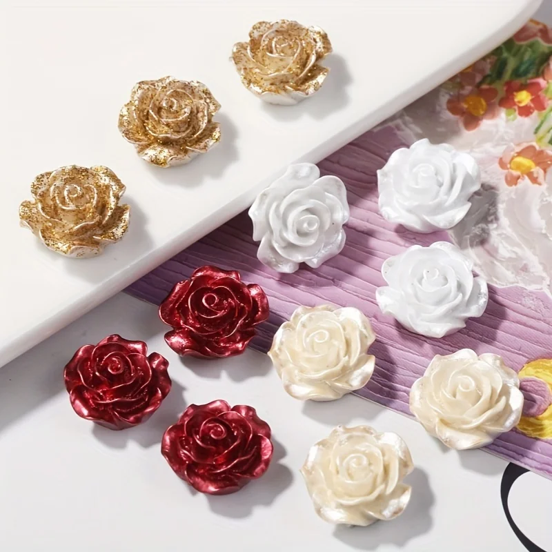 Resin 18mm Glitter Rose Flatback Big Flower Rhinestone Gems 10Pcs Figurines Scrapbook DIY Home Ornaments Applique Crafts OF578 L