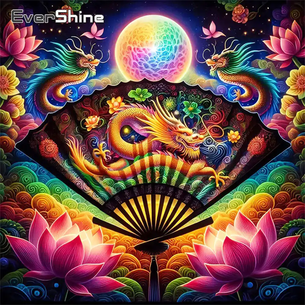 Evershine New Arrival Diamond Embroidery Dragon Animal Mosaic Lotus Flower DIY Diamond Painting Fan New Arrival Handmade Gift