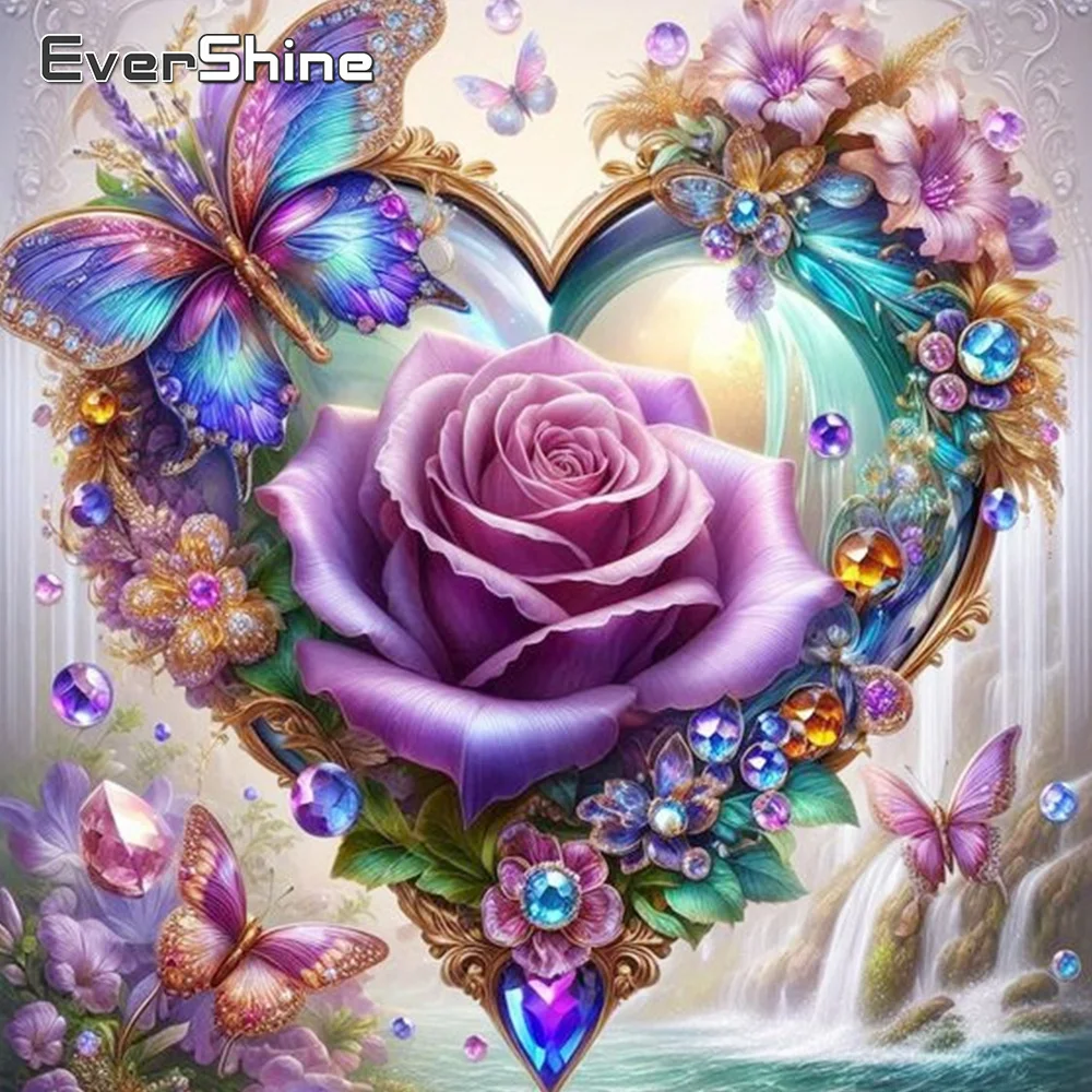 Evershine Diamond Painting Rose Flower Embroidery Love Full Square Round Mosaic Butterfly New Arrival Home Decor