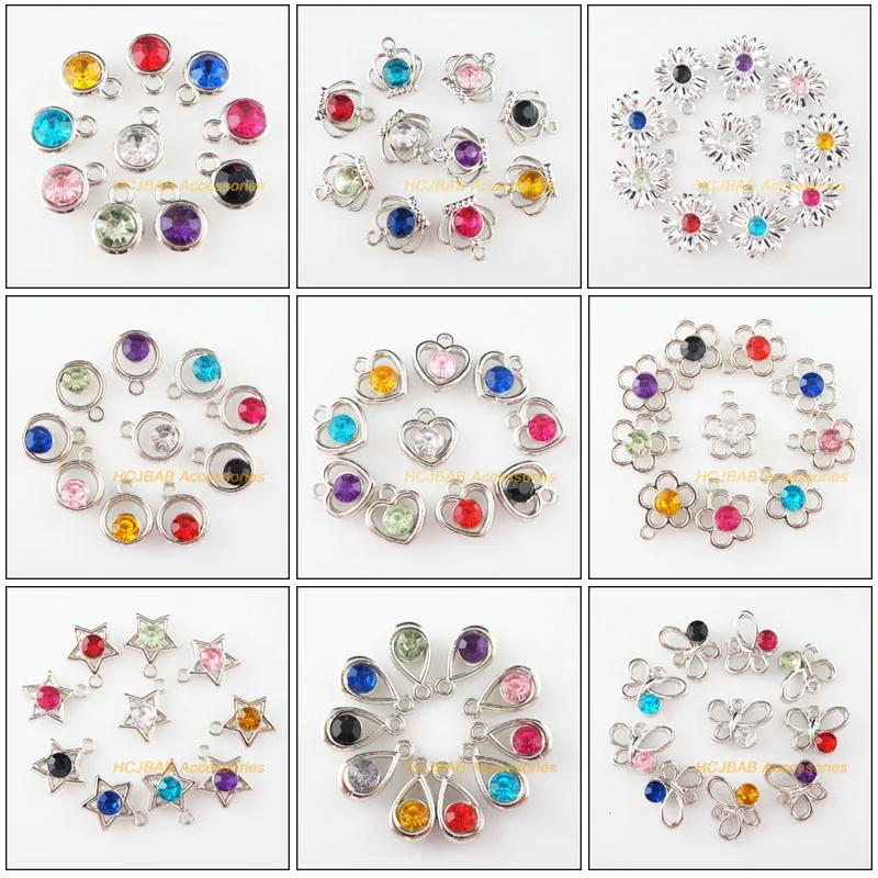 30Pcs New Flower Heart Round Crown Teardrop Animal Butterfly Acrylic Plastic Dull Silver Plated Pendants For Gifts Jewelry