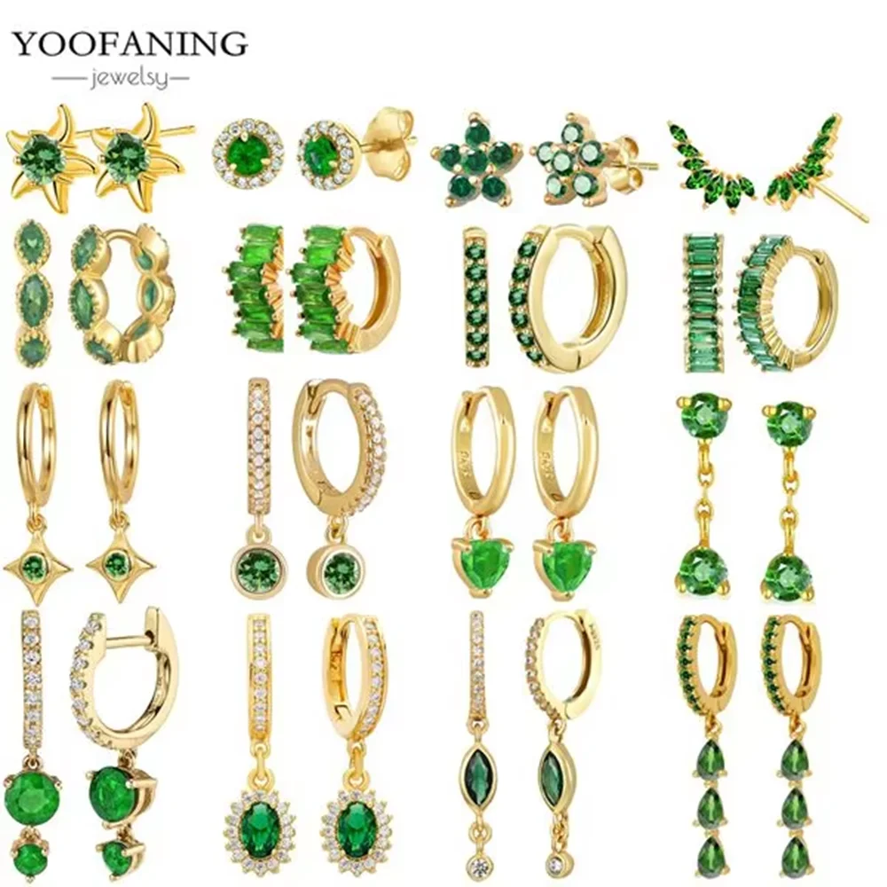 925 Sterling Silver Needle Classic Luxury Geometric Shape Green Zircon Heart-shaped Flower Fashionable Women's Earrings Jewelry