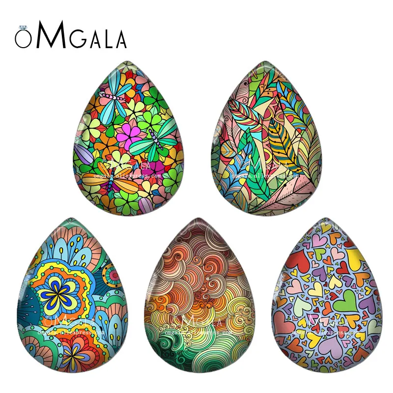 Colorful Striped Geometric Heart Flower Pattern 13x18/18x25mm Photo Glass Cabochon Flat Back For DIY Jewelry Making Findings