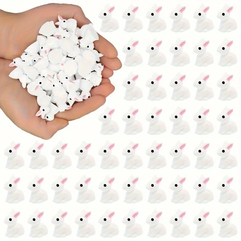 60pc Resin Miniature Rabbit Figurines Bunny Statues for Fairy Garden Decor Micro Landscape Ornaments DIY Crafts Cake Decor