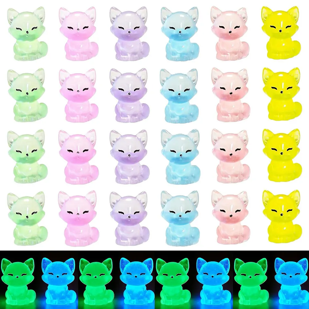 6/12PCS Mini Resin Glow in The Dark Fox Figures Animals Miniature for Micro Landscape Fairy Garden Decor