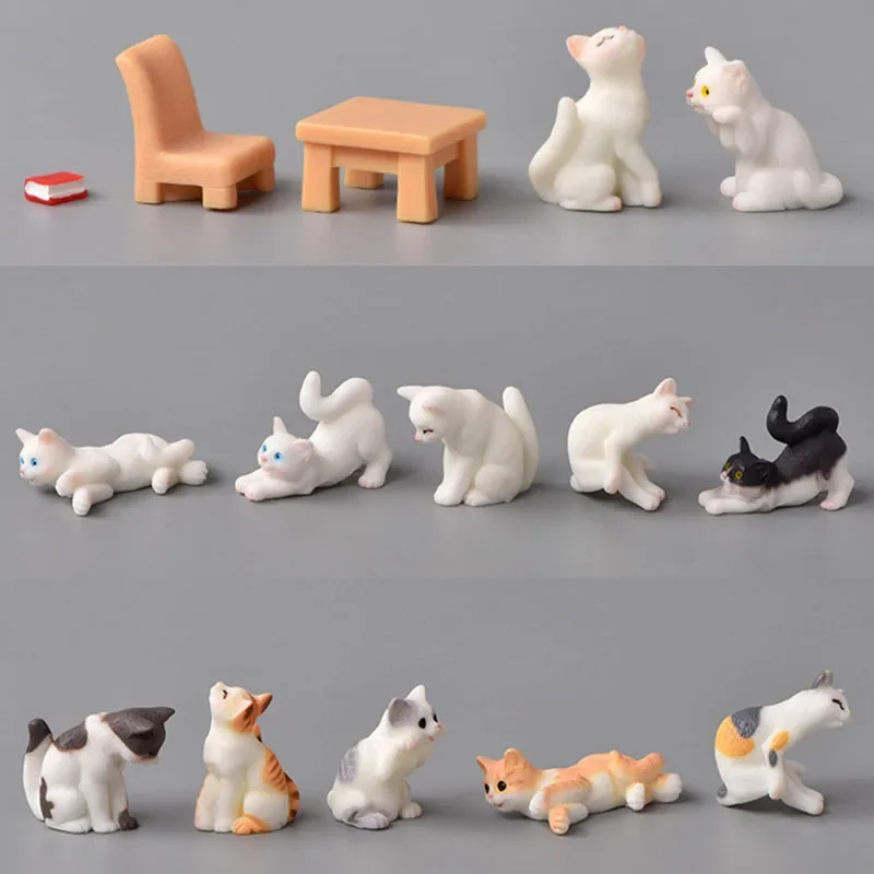 DIY Micro Landscape Resin Cats Ornament Kitten Figurine Animal Miniature Fairy Garden Doll House Decoration Home Decor