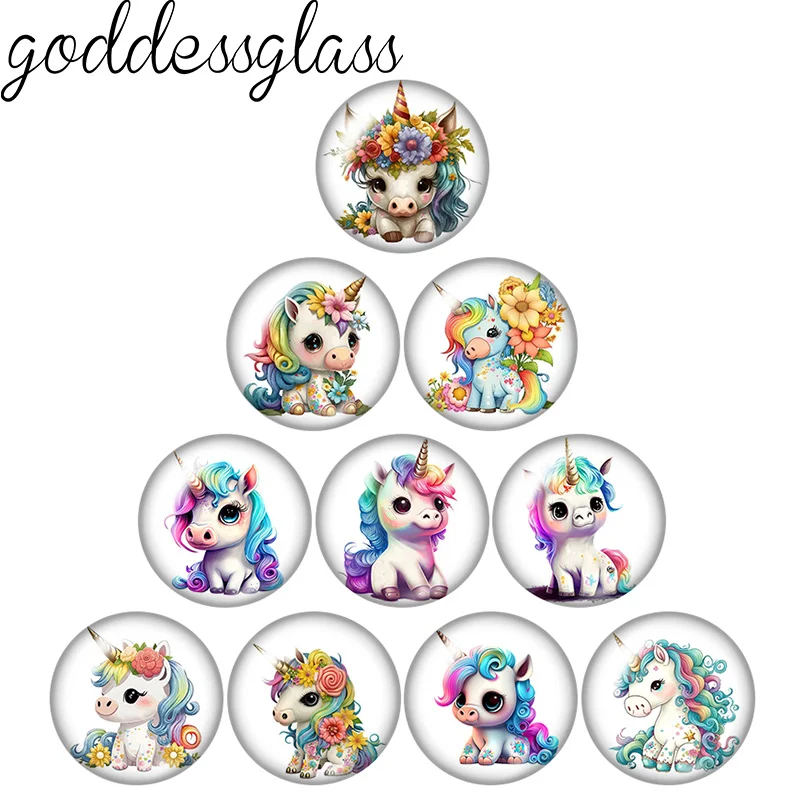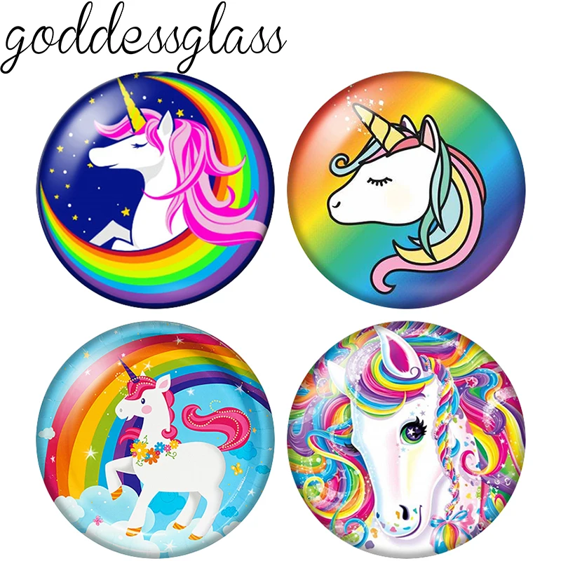 Cute Unicorn Rainbow colorful unicorn magic 10pcs 12mm/18mm/20mm/25mm Round photo glass cabochon demo flat back Making findings