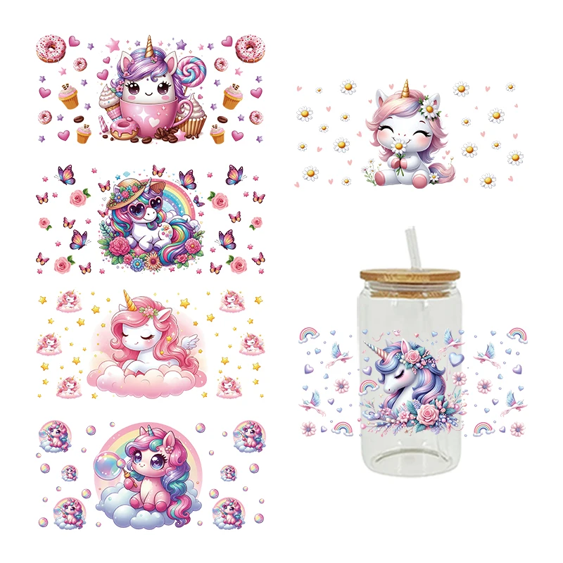 3D UV DTF Transfers Stickers 16oz Cup Wraps Animal Unicorn Printed For DIY Glass Ceramic Metal Leather Etc. D16131
