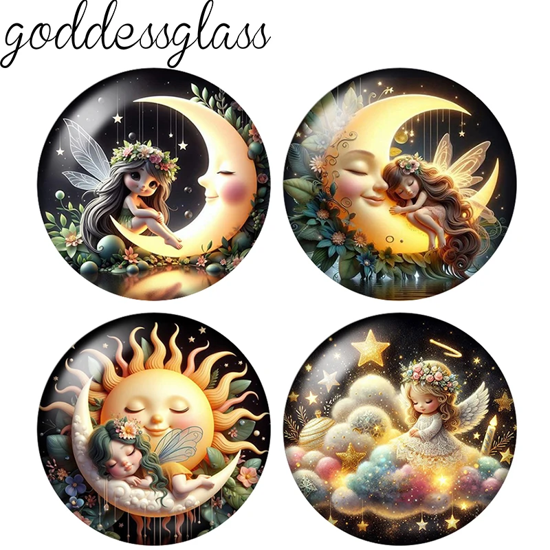 New Moon Sleeping girl Fairy lovely girls 10pcs 12mm/18mm/20mm/25mm Round Photo glass cabochon demo flat back Making findings