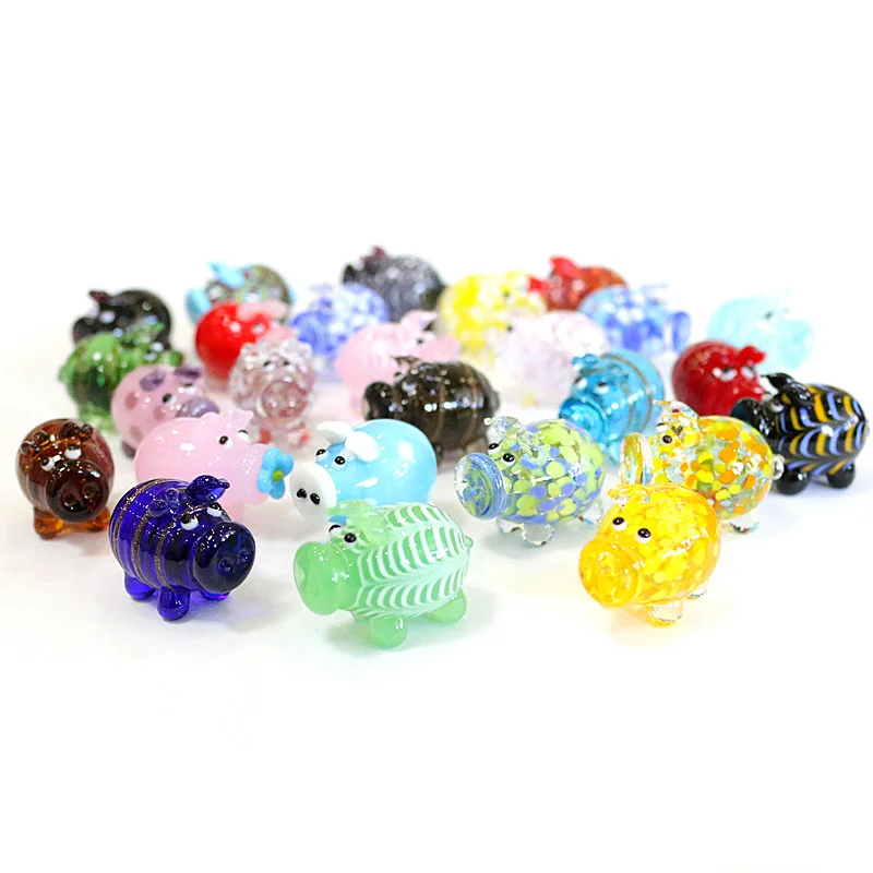 Different Styles Murano Glass Pig Mini Figurines Cute Tiny Animal Craft Ornaments Home Fairy Garden Kid's Room Kawaii Decoration