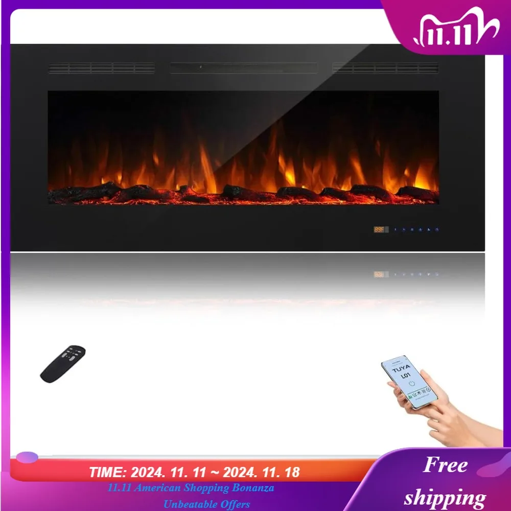 50" WiFi Smart Recessed Electric Fireplace Insert, 5 Flame Settings, Log Set or Crystal Options, Temperature Control by Touch