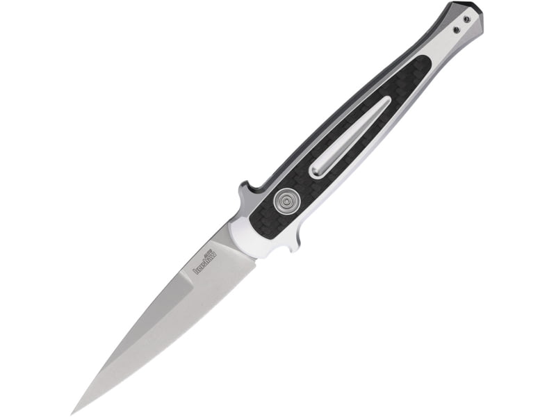 Kershaw Launch 8 Automatic Folding Knife 4.75in Closed 3.5in Stonewash CPM 154 Stainless Steel Blade Raw Aluminum Handle w/ Carbon Fiber Inlay 7150RAW