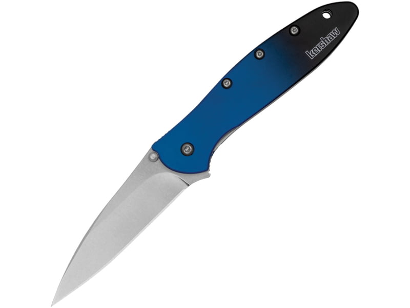 Kershaw Leek SW Blue Magna Cut A/O Folding Knife 4in Closed 3in Stonewash CPM Magnacut Stainless Steel Blade Blue/Black Gradient Aluminum Handle