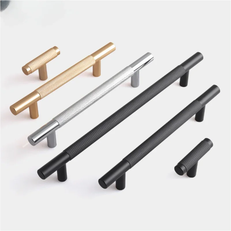 Modern Simple Gold Cabinet Wardrobe Door Handle Aluminum Alloy Copper Round Bar Knurled Carved Aluminum Alloy Drawer Handle