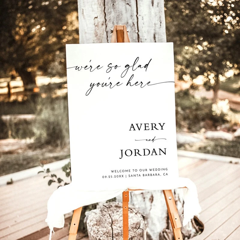Wedding Welcome Sign Vinyl Sticker Wedding Celebration Decor We're So Glad You're Here Wall Decal Custom Name Date Art Mural