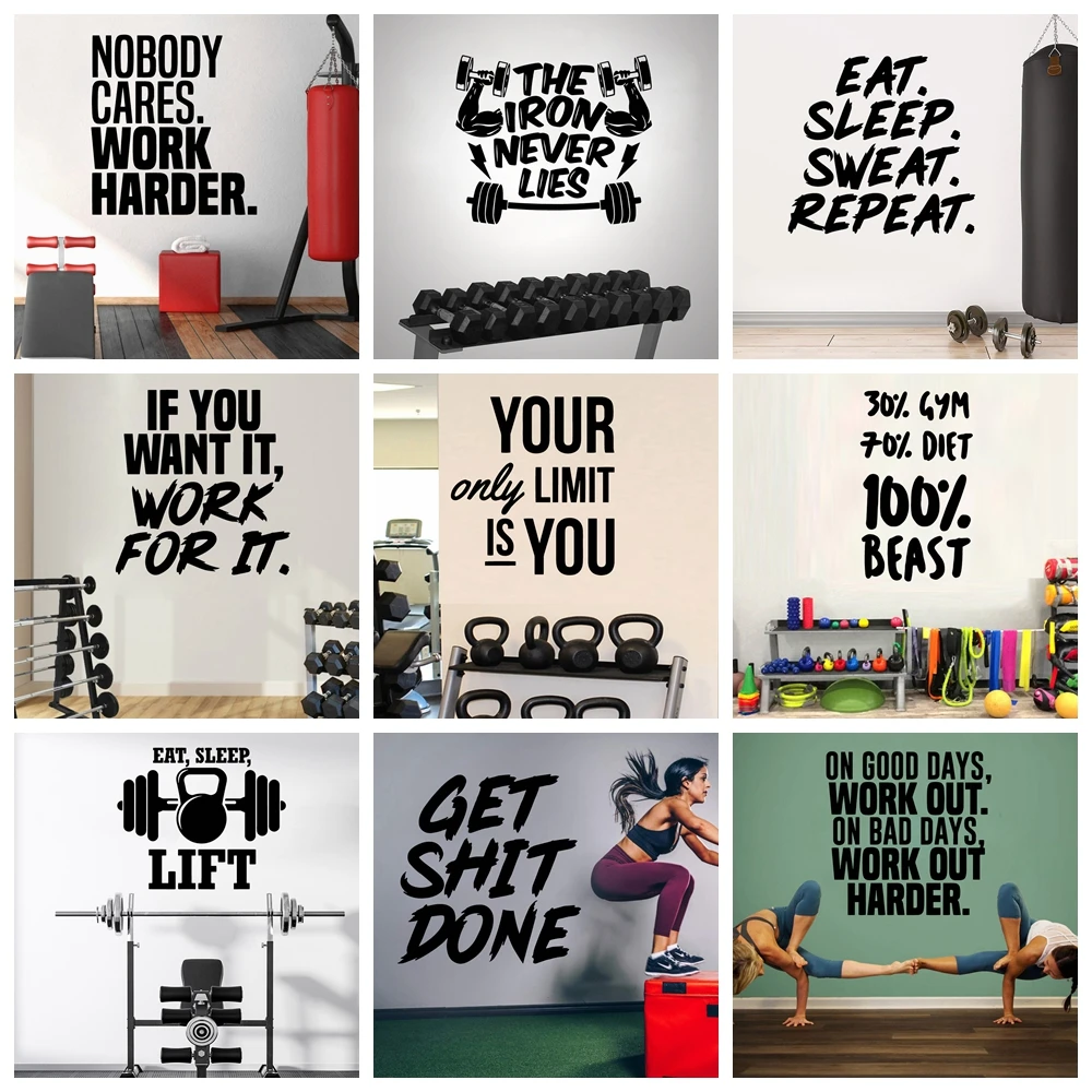 Cartoon Style GYM Vinyl Decals Wall Stickers For Bedroom Decoration Wall Art MURAL Drop Shipping