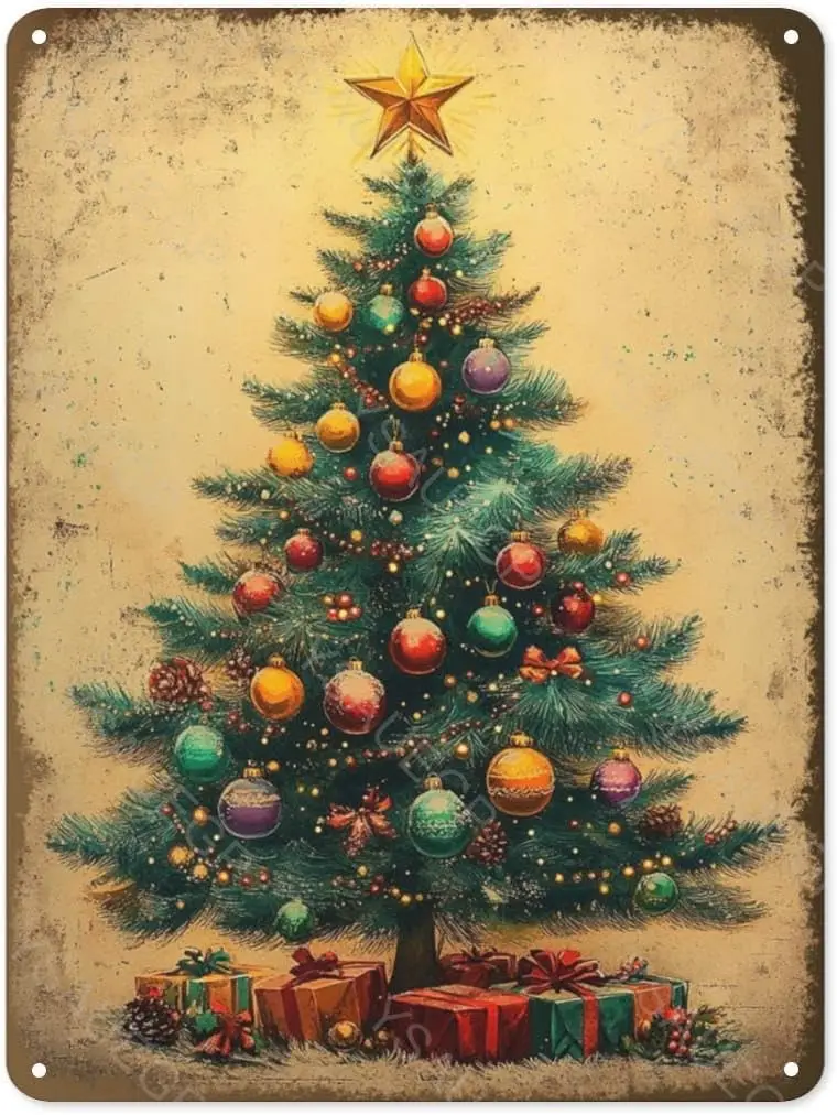 Vintage Christmas Tin Sign Rustic Christmas Tree Metal Sign Wall Decor for Home Kitchen Porch Garden Indoor and Outdoor Christma
