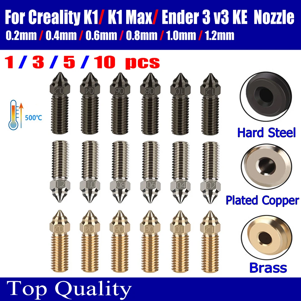 For Creality K1/k1 Max Nozzle Creality Ender 3 V3 KE Nozzle Brass Plated Copper Hardened Steel For K1/ CR-M4 Nozzles 0.4 0.6mm