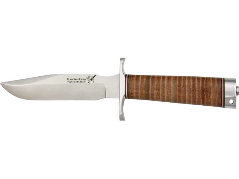 Blackjack Model 5 Leather Fixed Blade Knife 5.5in A-2 Tool Steel Stacked Leather Handle BCB5L