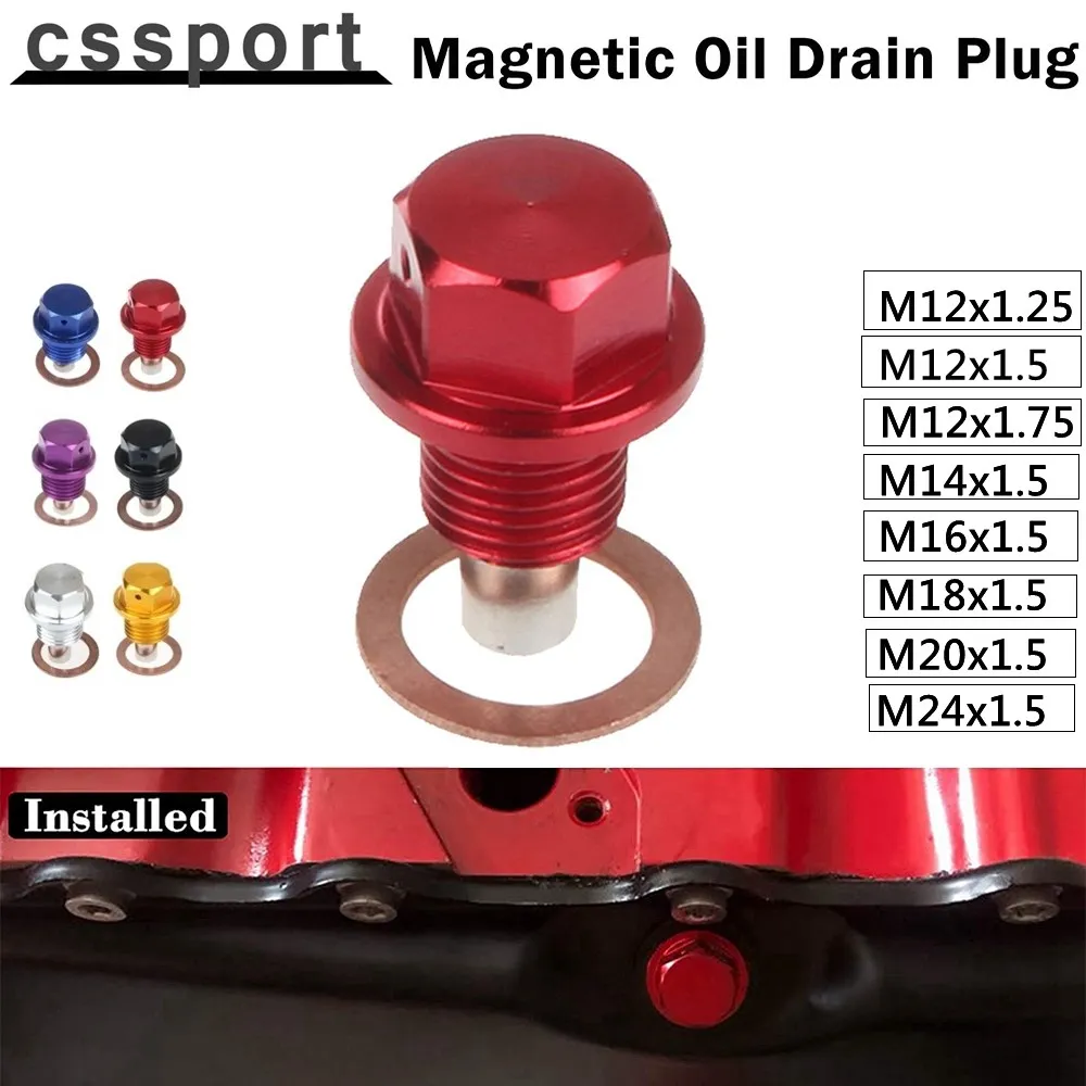 M12x1.5 M12x1.25Magnetic Oil Drain Plug Oil Drain Sump Nut Aluminum Alloy Gearbox Oil Sump Drain Plug Nut M16x1.5 M18x1.5