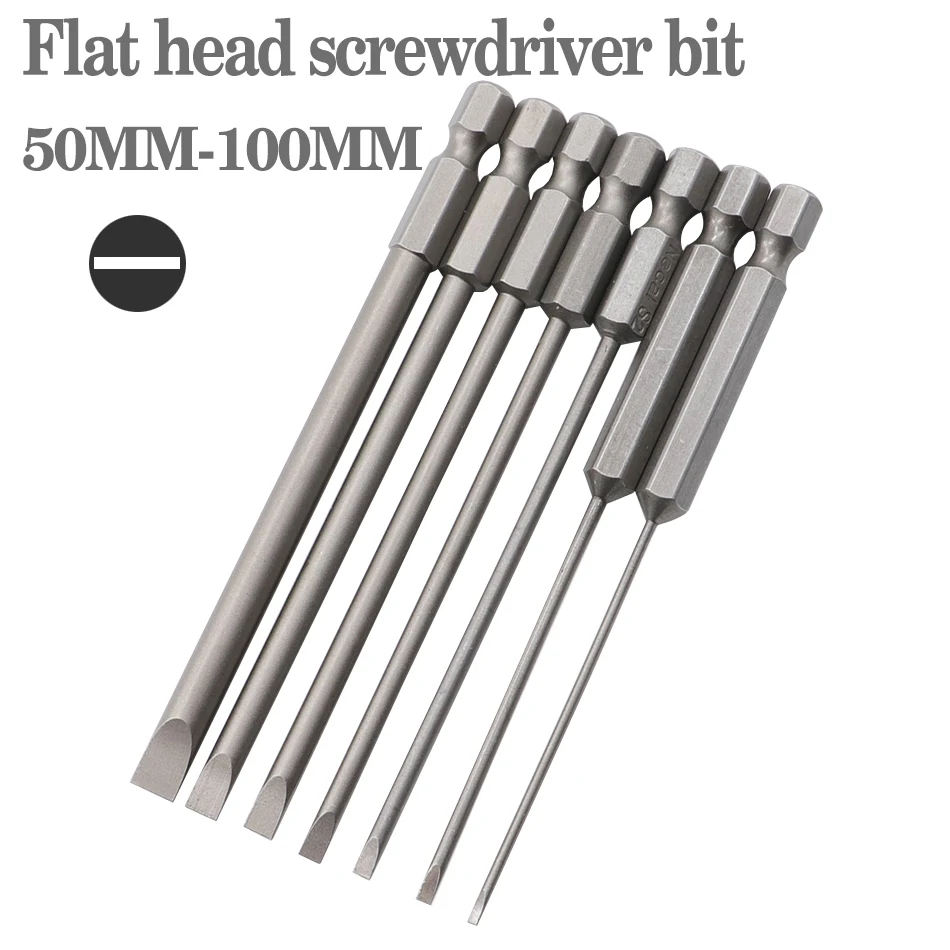 7pcs 50-100mm flat-blade screwdriver bit S2 alloy steel electric screwdriver bit 1.6-6.0 multifunctional manual screwdriver bit