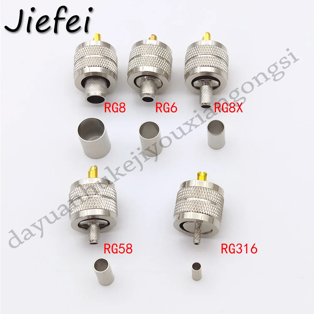 10-50Pcs Brass UHF Male PL259 Plug Crimp rg5 rg6 (RG58 RG142 LMR195 RG400) (RG316 RG174 RG178 )(RG8 RG213 RG214 LMR400 )RG8X
