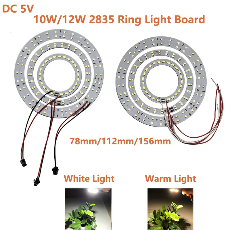 DC 5V LED Light Beads Bulb Light Source SMD 2835 Ring Board LED Chip 10W 12W with SM Female Line White/ Warm Light