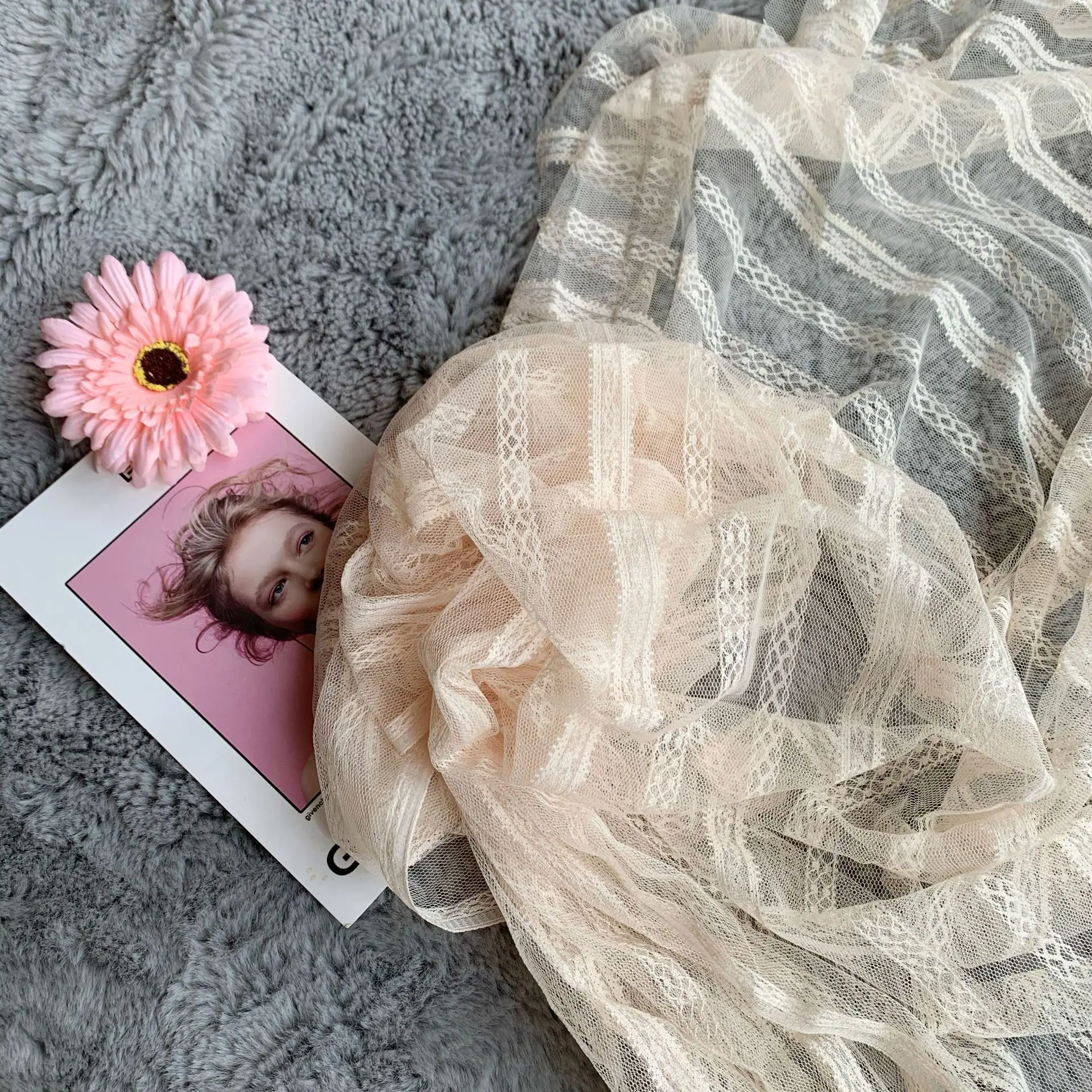 2 Yards Vertical Stripe Lace Jacquard Mesh Fabric DIY Handmade Clothing Fabric Home Textile Curtain Decorative Fabric