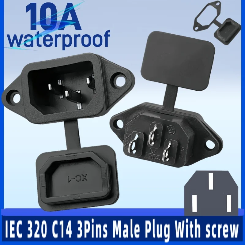 IEC320 C14 Plug Connector 3Pins10A AC Electrical Panel Mounted Power Socket With Waterproof PVC Cover For Car Motorcycle Trailer